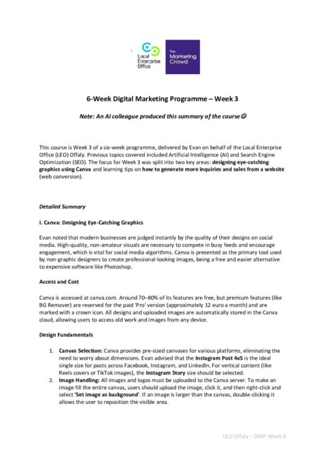 Week 3 DMP Offaly – Canva & website conversion – Course summary and action points