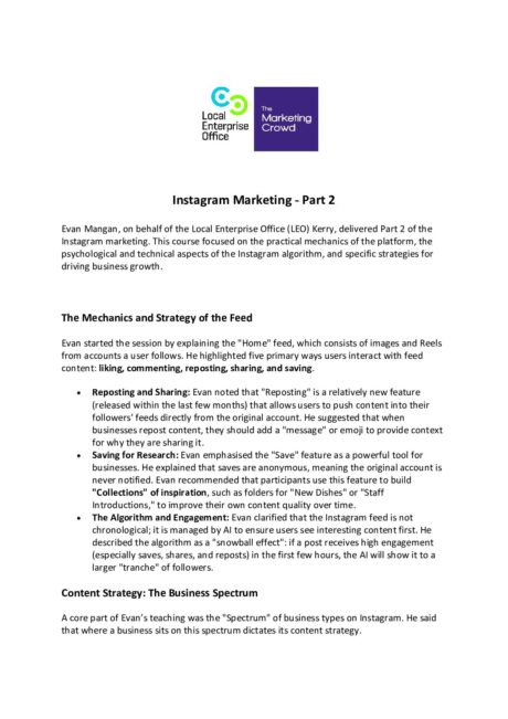 Instagram marketing part 2 – Kerry LEO Jan 20th – Course summary and action points
